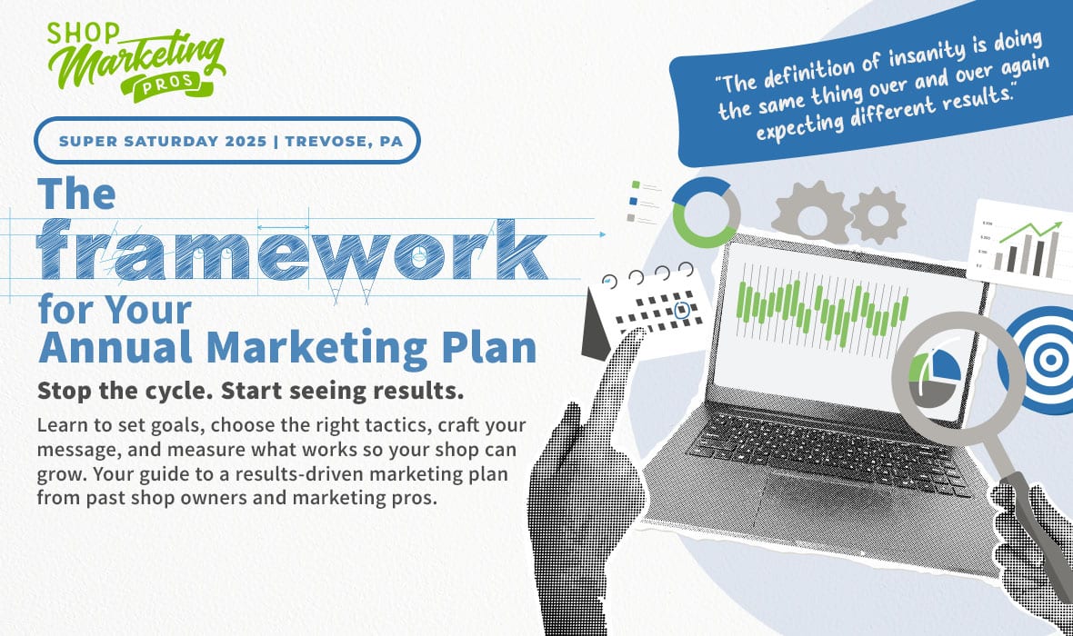 The definition of insanity is doing the same thing over and over again expecting different results. It’s time to get off of that merry-go-round and create a plan from which you can see remarkable results. In this session, former shop owners, now marketing strategists, will teach you how to step back and work on your shop’s marketing plan so that you leave with the ideas, knowledge and confidence to promote your shop like never before. Core concepts addressed in this hands-on class include:Â